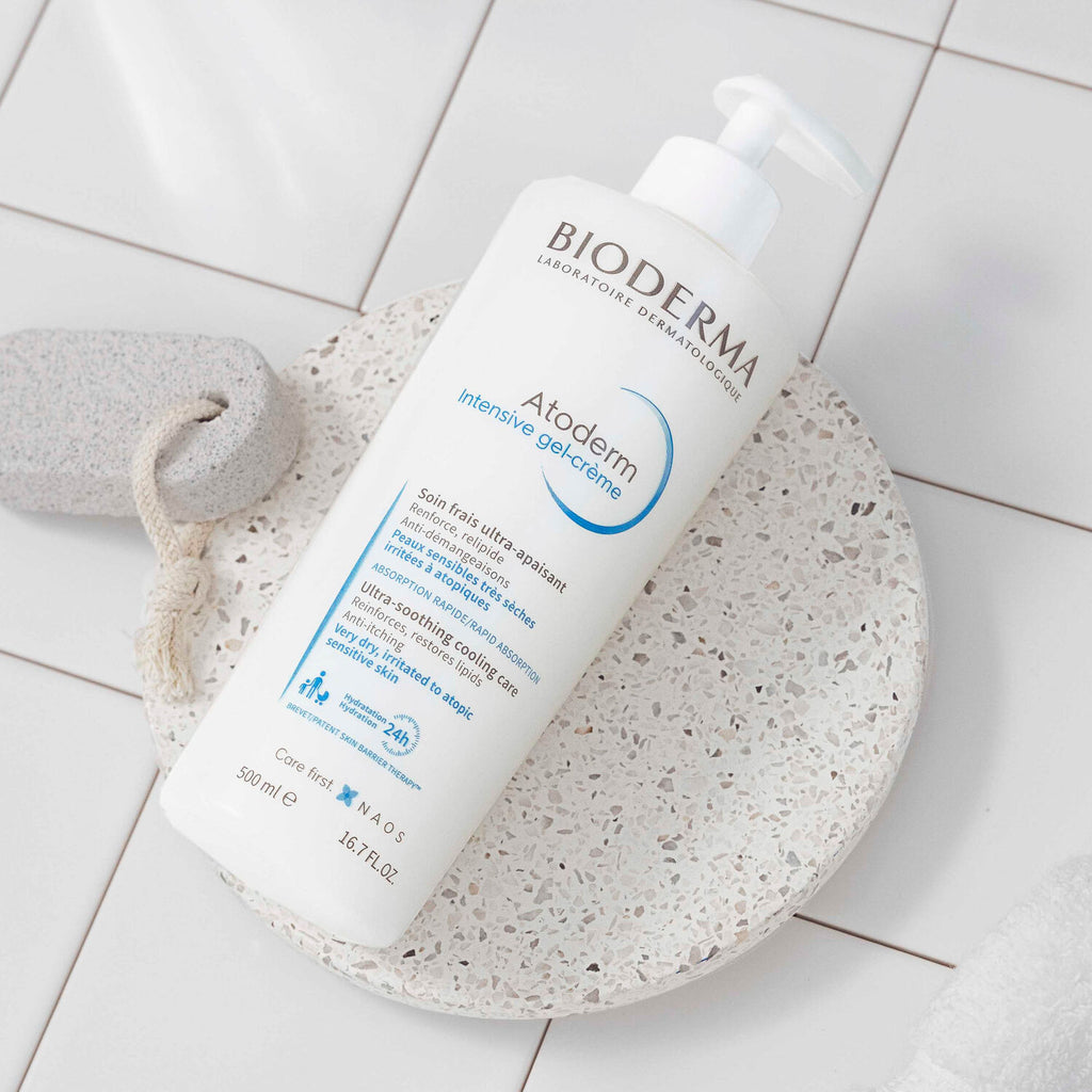 Atoderm Intensive gel-cream is the first soothing, nourishing skincare product for atopic skin with an ultra-light and fresh texture that is quickly absorbed by the skin.